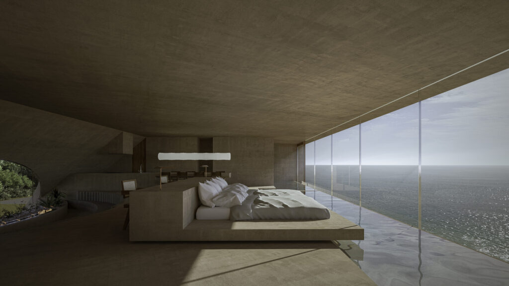 「UMITO 淡路島 オーシャンルーフ」は、淡路島の風景や地域の歴史と調和することで生まれる、静かで確かな特別感を追求し、煌びやかさに頼らず、訪れる人の記憶に残る体験そのものを価値として提供するためこの地に誕生します。建物には淡路島特有の石や砂を取り入れ、柔らかな色味で島の土の趣を表現。地域の景観との調和を尊重しつつも、島の景色にアクセントを加える独創的な建築で存在感を放ちます。50年先を見据えた耐久性とデザインにより、時を経ても風景と共に価値を保つ建築を目指しています。