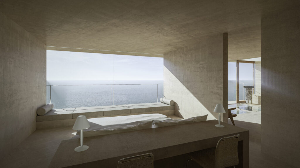 また、敷地の環境や自然の光、風、海沿いの景色を丁寧に読み取り、アプローチ全体の体験を空間に反映。明石海峡大橋を渡り、淡路島に足を踏み入れたその瞬間からホテル到着までの“旅路”を意識したシークエンスを演出し、淡路島を訪れる全ての人にとって特別な時間と記憶が紡がれるよう思いを込めてデザインされています。