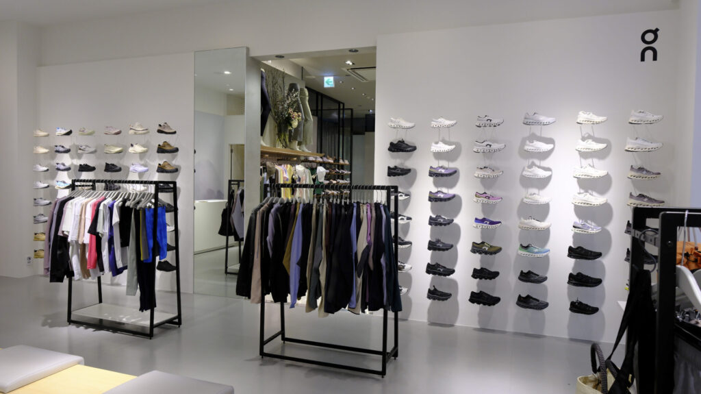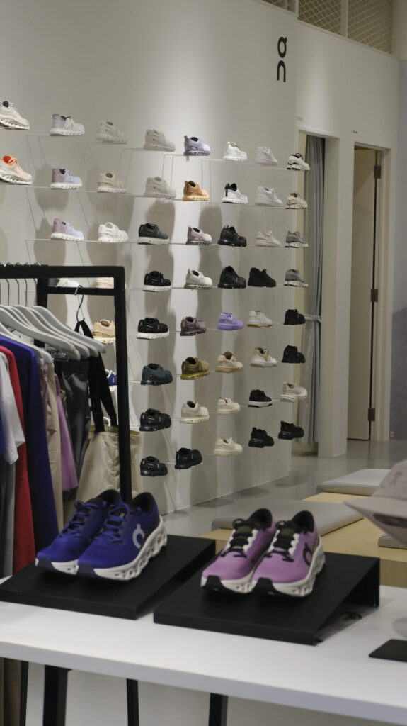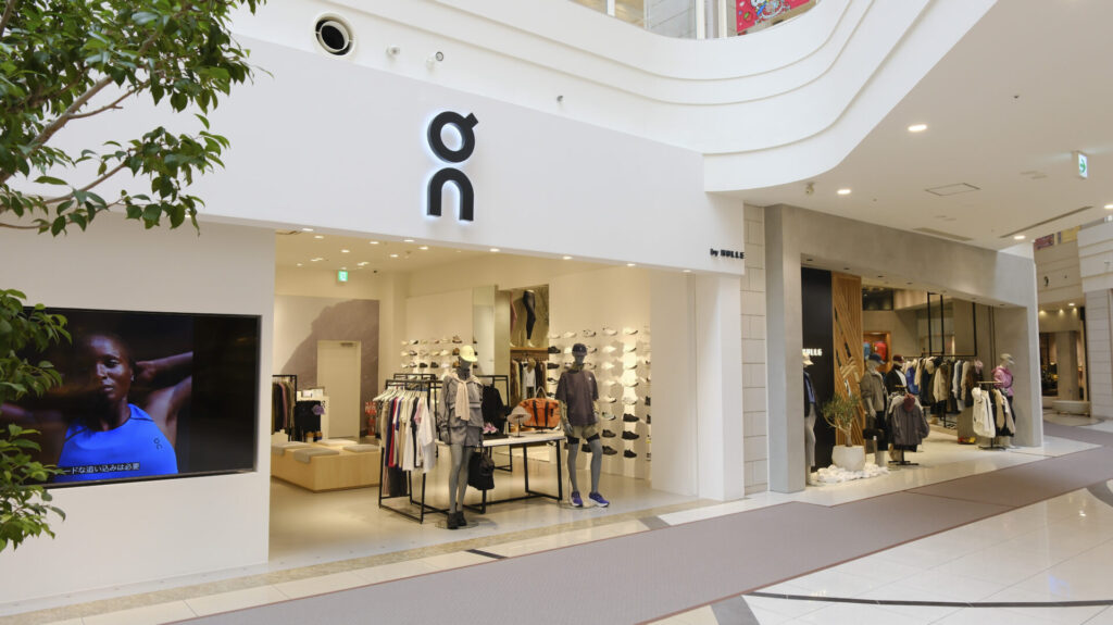 隣接エリアには、ランニングブランド「On」の売り場「On by HULLE」が展開されています。シューズだけでなくウェアも含め、幅広いラインアップが揃い、ブランドの世界観を体感できる空間となっています。関西エリアでもこれだけまとまったラインアップで展開されている店舗は珍しく、Onのアイテムをじっくり選びたい方にとって魅力的な売り場です。