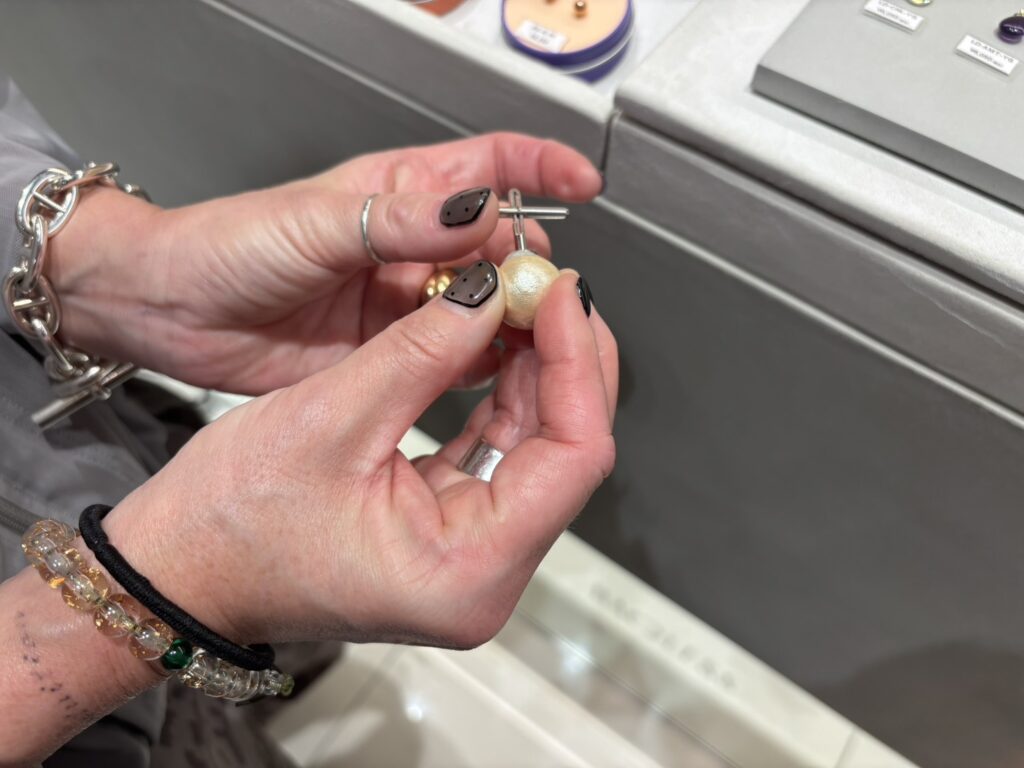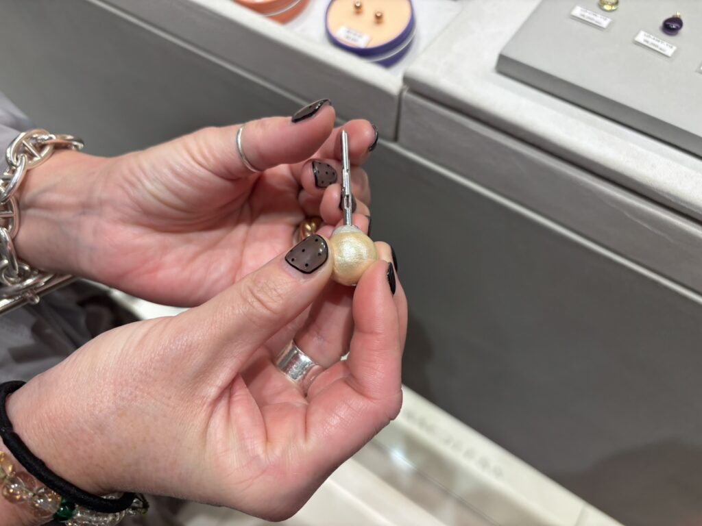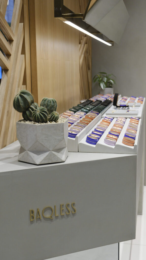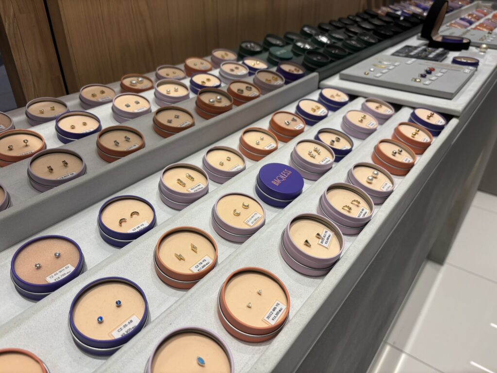 今回のリニューアルにあわせて、「Baqless(バックレス)」のShop in Shopが関西で初出店しました。“落ちないピアス”として知られるBaqlessは、フランス在住のジュエリーデザイナーと、スイスの老舗腕時計ムーブメントファクトリーが8年の歳月をかけて共同開発したアクセサリーブランドです。キャッチを必要としない独自構造により、「紛失しやすい」「引っかかる」といった従来のピアスの課題を解消。ポスト部分をスライドすることでフィット感の調整も可能で、快適な着用感を実現しています。