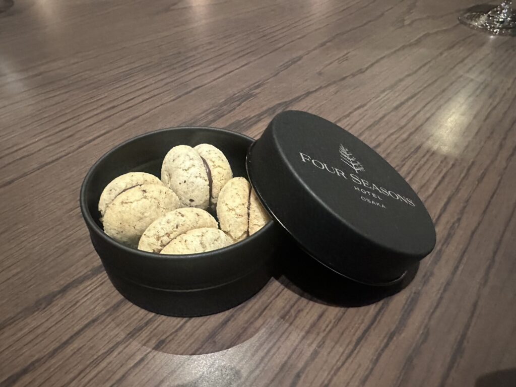 すべての料理を堪能した後には、パオロ氏からイタリア発祥の伝統菓子「バーチ・ディ・ダーマ」をお土産にいただきました。“貴婦人のキス”というロマンティックな名を持つこの焼き菓子は、半球状のクッキーでチョコレートを挟んだ一品。今回はヘーゼルナッツが香るタイプで、サクサクと軽やかな食感と、甘さ控えめのチョコレートのバランスが絶妙でした。