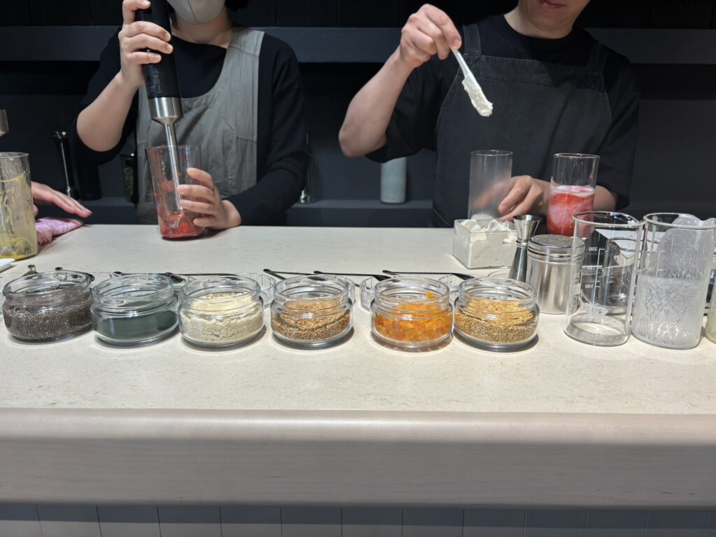 店内のカウンターでは、甘酒スムージーを中心に“醸す”を身体で体感いただけるドリンクや焼菓子をご用意。日本の食文化や季節の豊かさを感じることができるラインナップとなっています。