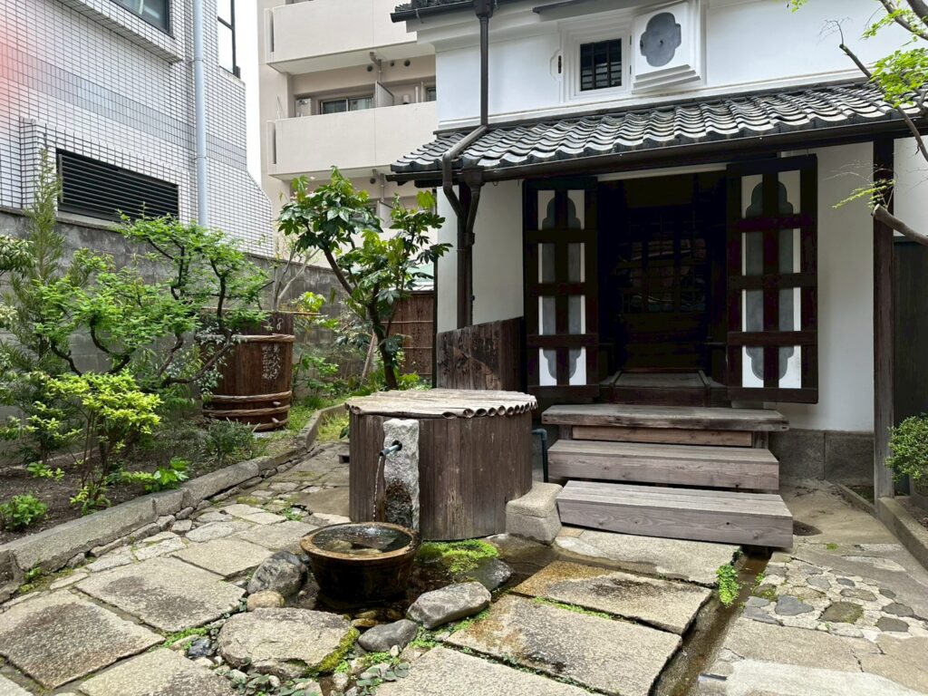 中庭に湧く超軟水の「桃の井」の湧水を使用