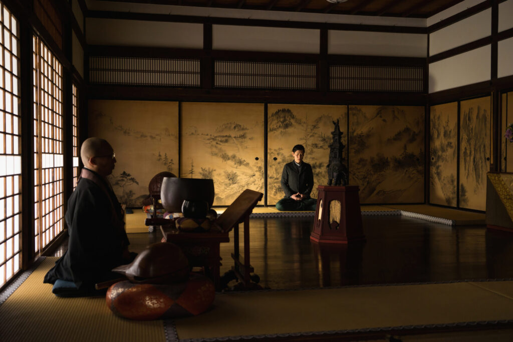 大徳寺瑞峰院にて、早朝の凛とした空気の中、読経と座禅を行う「朝のお勤め」を体験できます。体験の後は、お抹茶をいただきながらご住職の説法を聞いて、禅の心に触れます。