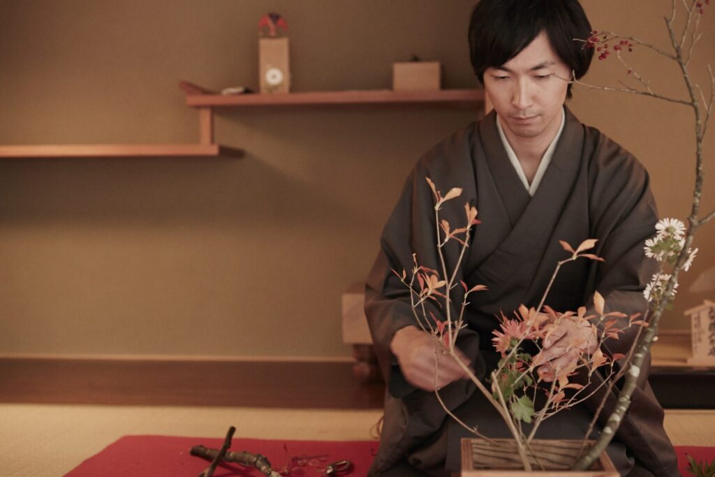 未生流笹岡家元から直接華道を学ぶことができるプライベートレッスンです。静謐な和室で花材と対話し、生け方の初歩から日々の暮らしに通じる教えまで得ることができます。草花の取捨選択を通じて本質を見極める観察眼を養い、深い集中力へと導きます。伝統美に触れながら心を整える時間です。