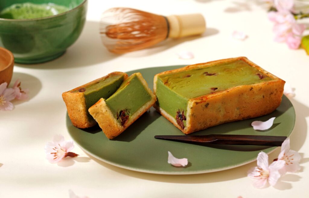 デンマーク産の濃厚なクリームチーズに、京都府産宇治茶の抹茶を使⽤した抹茶ペーストとさくらんぼ果⾁(ドライ)を加え、塩漬けの桜葉を練り込んだビスキュイ⽣地で包み、1本1本手作りで焼き上げました。抹茶の⾵味とさくらの⾹りが春の訪れを告げてくれる、このうえなく濃厚で贅沢なチーズケーキです。