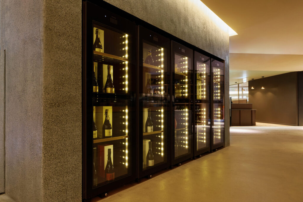 温度管理の行き届いたセラーには、300本を収蔵(最大収蔵時900本)。老舗からライジングスターまで、世界のワイン愛好家に人気の高い、希少価値の高いワインが取り揃えられています。フランスのブルゴーニュ、ボルドー、シャンパーニュを中心に、ヨーロッパとニューワールドの各銘醸地を代表するハイエンドレンジをセレクション。関西では他に例を見ない、プレミアムな価格帯に絞った品揃えに注目です。