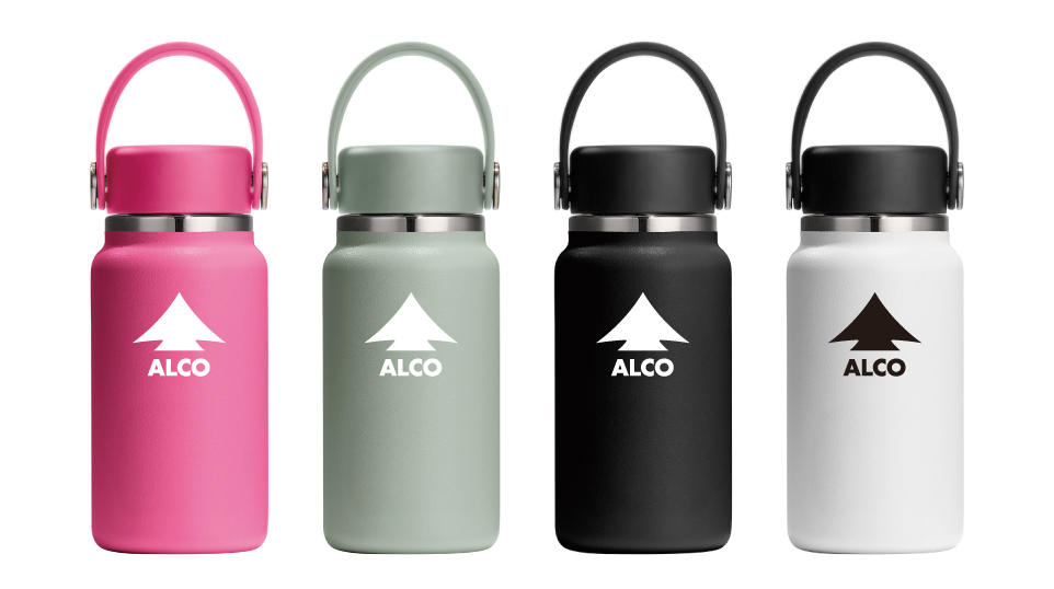 グランドオープンを記念し、ご購入金額に応じた特別なノベルティもプレゼント。アルコロゴをあしらった缶バッチと大人気シリーズ「200ml MICRO HYDRO」の限定アイテムです。