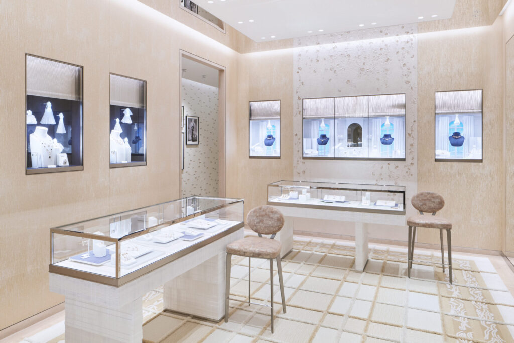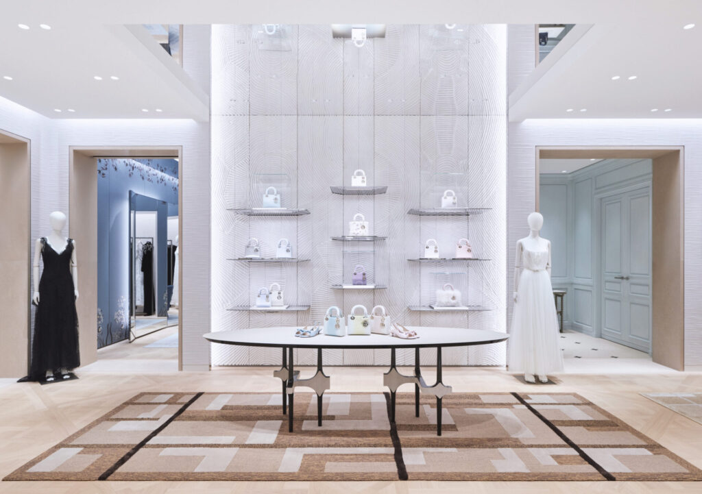明るく洗練されたこの新しいブティックに取り付けられたデザイナーによるインテリアのアイテムには、ムッシュ ディオールが愛した明るい色調があしらわれており、ヴェルサイユの寄木細工のフローリングやフローラルモチーフなど、アイコニックなパリの本店「30 モンテーニュ」を彷彿とさせる建築要素が特徴です。現在は、ジョナサン・アンダーソンによる2026年春夏 コレクションが展開され、この上なく魅力的なディオールのエッセンスを再解釈しています。