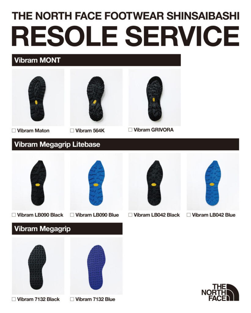 ヴィブラムジャパン株式会社が提供するアウトソールを使用した「Resole Service(リソールサービス)」では、すり減ったアウトソールと優れたグリップ力と耐久性を誇るVibram Sole(ヴィブラムソール)を9種類(店舗オープン時)のソールの中から選択し交換することも可能。このように好みのソールに交換できることで、オリジナルフットウエアとして楽しみながら長く使い続けることができるため、当社が注力する製品のロングライフを実現できるサステナビリティも意識したコンテンツとなっています。