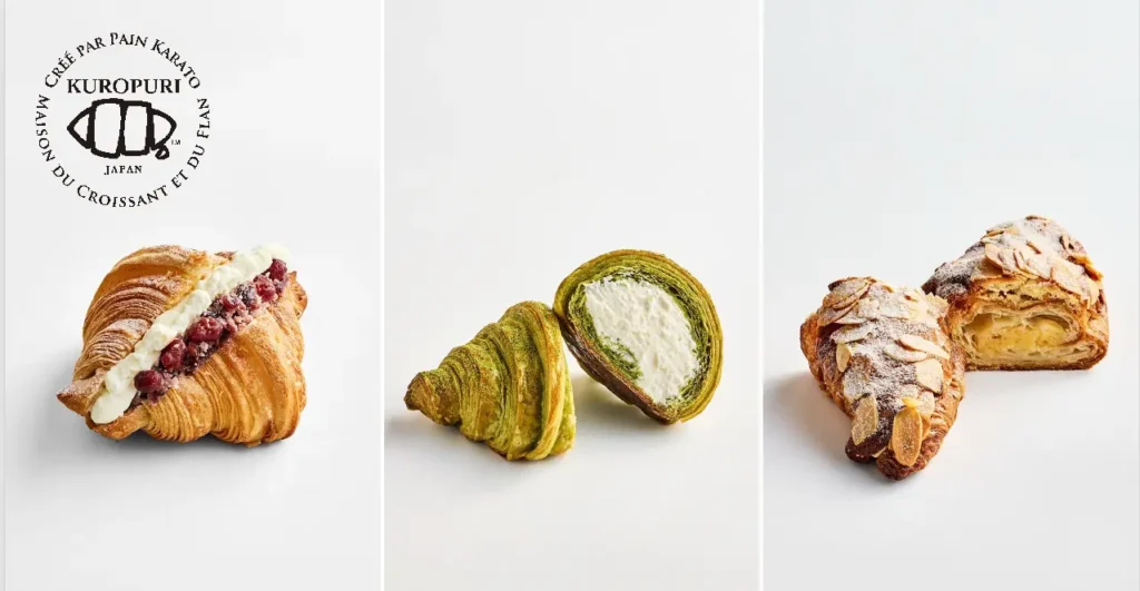 左から、「あんこバター詰めクロワッサン、あふれる気持ち!」「ホイップ詰め京都・辻利抹茶のクロワッサン」「クロワッサンプラリネダマンド」