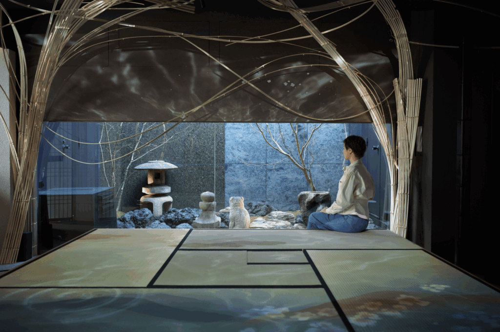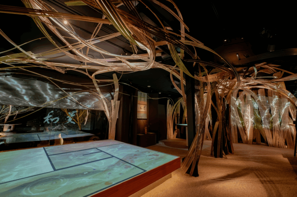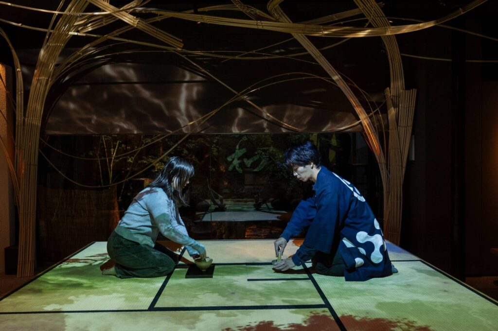 会場となる「光の茶室 貴和(KIWA)」は、ネイキッドが手がけるアート演出とともに、茶の湯・華道・庭の文化が融合する空間です。本空間には、裏千家、いけばな草月流、そして京都の庭文化を象徴する植治(うえじ)も参加し、京都が育んできた精神性と美意識を、現代の空間体験として立ち上げています。