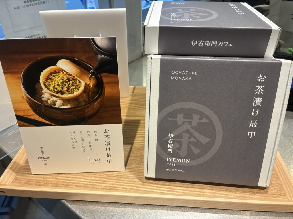 店頭で販売されているお茶漬け最中は、煎茶 三色ゆば・煎茶 鯛・ほうじ茶 しば漬け・ほうじ茶 ちりめん山椒の4種類の味を楽しめるアソートセット。