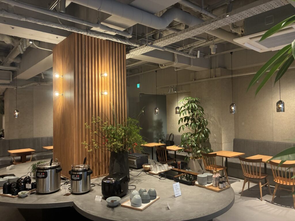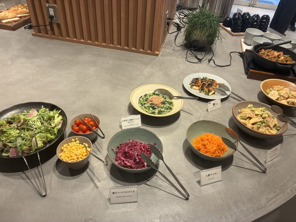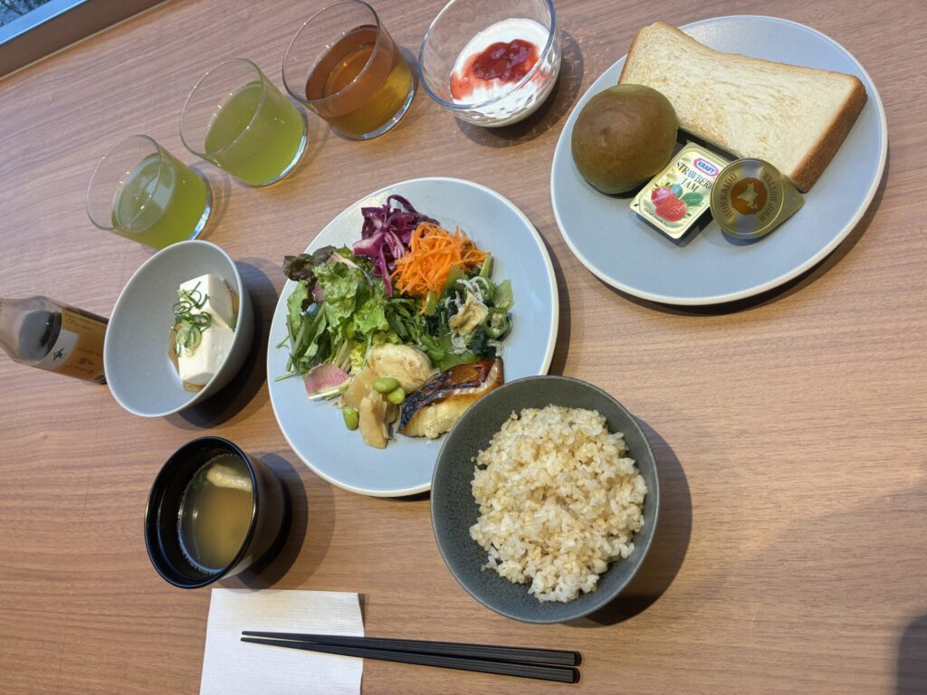 ビュッフェでは、数種類の日本茶を飲み比べながら、旬の野菜を使ったおばんざいや、和惣菜、サラダ、ごはん、味噌汁などがラインナップ。小松菜と釜揚げしらすのおひたしや鯖、白だしのジャーマンポテト、お茶漬けは「伊右衛門 抹茶入り煎茶」もしくは「伊右衛門 抹茶入り玄米茶」から選べるほか、カレーなど満足感ある朝食にどれから食べようか選ぶ時間もビュッフェの醍醐味です。メニューは季節によって変わるとのことで、今から楽しみです。