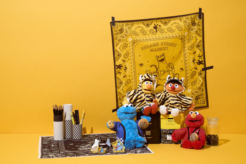 トラのコスチューム姿になったエルモとクッキーモンスター、たこ焼きなど、大阪ならではのモチーフをたっぷりと詰め込んだデザインのバンダナ。大阪らしいイエローとブラックの2カラー展開で、首元や髪、バッグに結んでアクセサリーとして使ったり、お部屋のインテリアとして飾ったりと、様々なアレンジができる万能アイテムです。