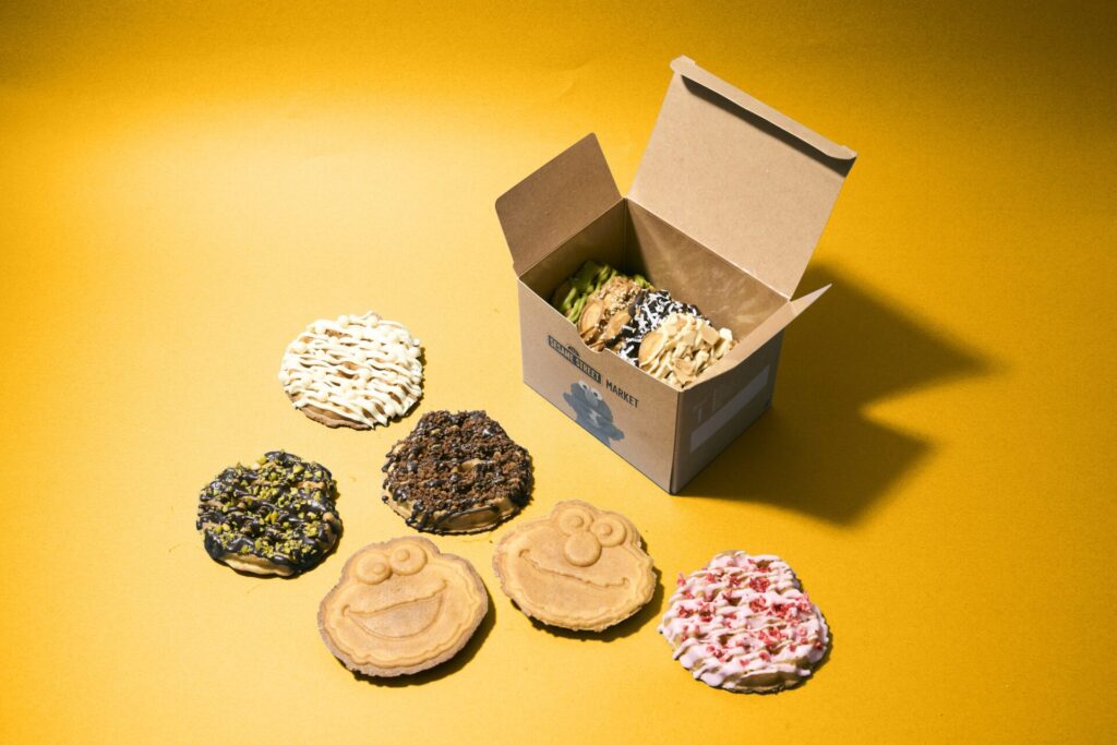 現在豊洲店限定メニューとして大人気のアメリカンワッフルが、テイクアウト用のミニサイズになって新登場!エルモ、クッキーモンスターの形をしたミニワッフルに、なめらかな口どけが特徴のチョコレートをコーティング。全8種のフレーバーからお好みの4個を選び、専用のワッフルボックスに詰めるテイクアウト限定メニューです。ご家族やご友人へのお土産としてシェアしたり、ちょっとだけ食べたいという小腹を満たすおやつにもおすすめ。バター香るワッフルの香ばしさと、チョコレートのミルキーな甘さが絶妙にマッチする、見た目も味わいも楽しいラインアップです。